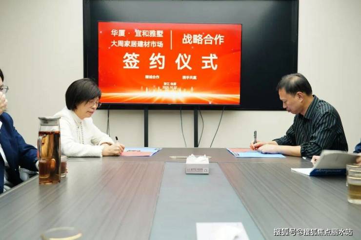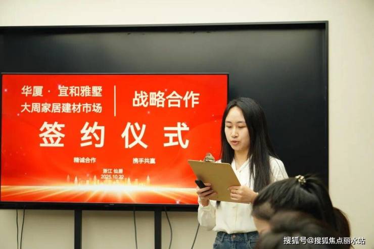 随后仙居大周建材市场与仙居宜和雅墅战略合作签署仪式在宜和雅墅营销中心隆重举行。大周建材市场陈总与宜和雅墅应总共同拿起笔,在合作协议上郑重签字;落笔瞬间,两人默契握手,现场掌声雷动——这一握,不仅是两家本土优质企业的“牵手”,更是给宜和雅墅业主送上的“装修定心丸”。