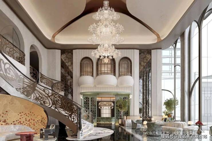 复刻厦门标杆项目建发・宸启瑞湖的海派美学基因:花瓣式艺术吊灯如飘落花雨点缀空间,南洋菱形釉彩地砖映出光影流转,Art Deco 线条与珐琅彩玻璃交相辉映,螺旋楼梯如当代雕塑般盘旋而上 —— 每一处细节,都是对卓越品位的精准表达。