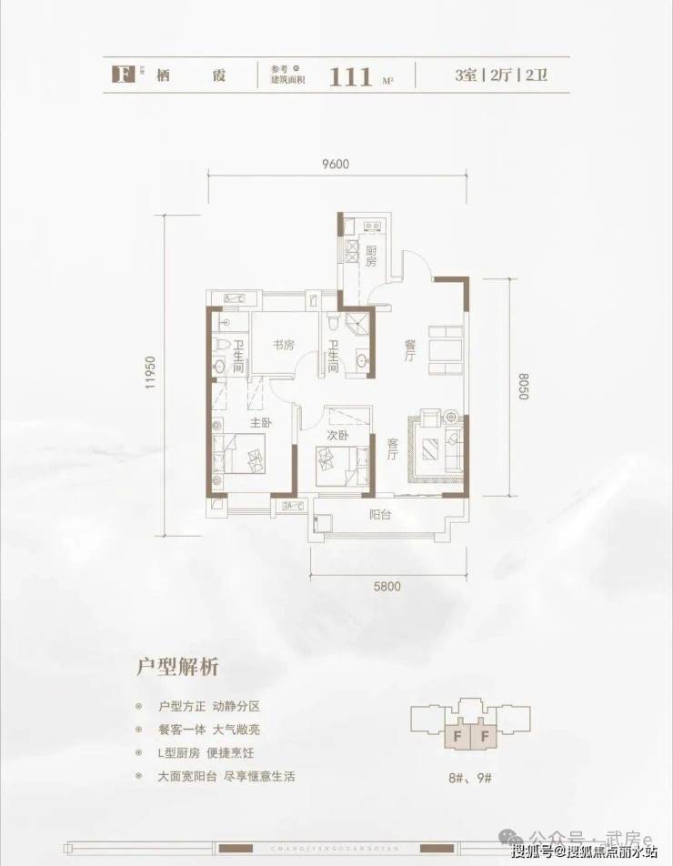 户型方正,三开间朝南,5.8米南向阳台,动静分区,主卧带套间设计,刚需人群!