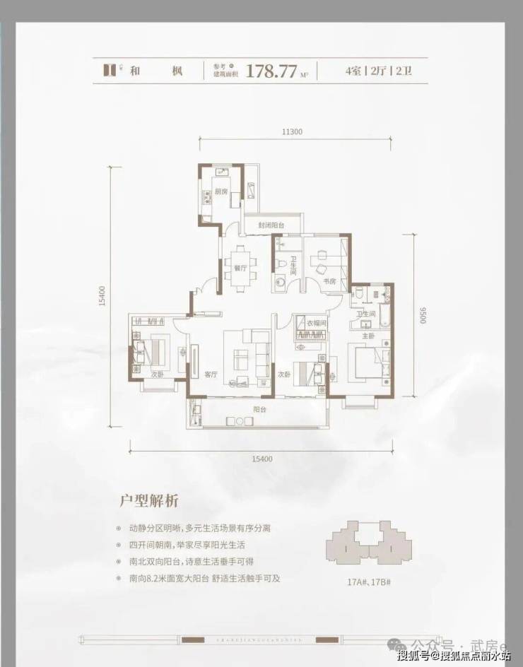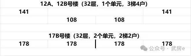 目前主推的12A、12B号楼为32层的连廊结构,三梯四户,分布户型为建面约108-141平三房四房;17B号楼则是两个单元的纯板式楼,均是两梯两户,分布户型为建面约178平的大平层。