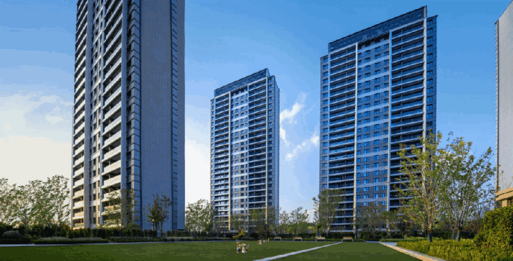 社区以“一环三轴、五重归家礼序”为核心,乔木蔚然成荫,草坪如柔软地毯铺展于社区之中,营造出可观赏、可感知的实景园林,让度假的松弛感成为现实。