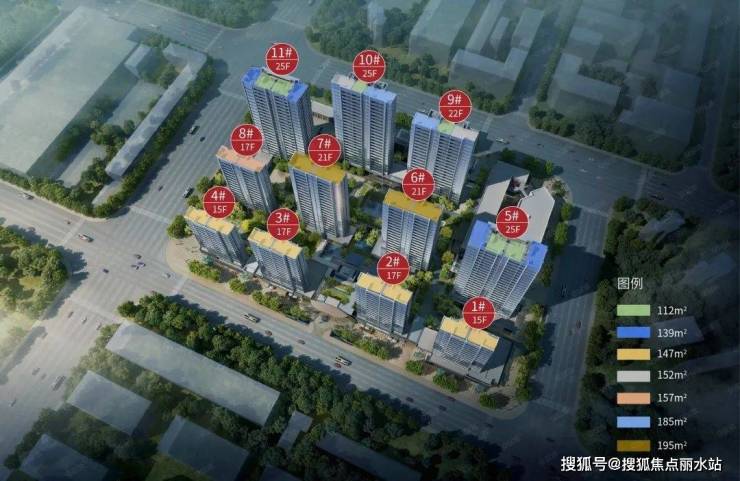 小区一共有11幢15-25层住宅,住宅557套,主力建筑面积约148-200㎡城市高奢进阶作品。外立面四面铝板,南面大面积玻璃幕墙。搭配竖向的铝板线条,呈现出现代简约风格,整个小区呈现中轴对称设计,南低北高,整体布局强调仪式感,三进空间设计,户型分布充分利用地块面宽及景观资源,未来交付后远处一看呈现亮丽的天际线。