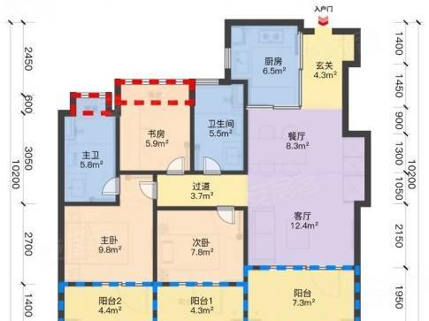建面约 94㎡三房两厅两卫:刚需入门优选,紧凑实用无浪费。三开间朝南,采光面充足,搭配三个阳台设计,拓展空间利用率;主卧套房设计,带独立卫浴与飘窗,保障主人私密;客餐厅一体化,动线流畅,U 型厨房操作便利,满足三口之家日常居住需求,总价约 461-565 万,置业门槛友好。