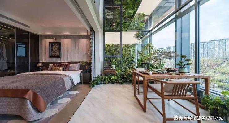 为了更好地传递这份松弛生活感,借助万科可变户型“筒中筒·三根柱”的优势,后期主卧套房可与立体庭院打通,居住者在卧室中,便可赏云观星,万科雲樾不仅拥有高得房率,更拥有让天空风景成为家中一部分的“得空率”。