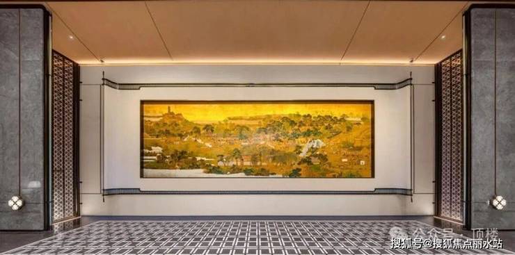 视线随脚步抬升,是中国古建中等级至高的重檐坡顶,凌空出挑。由齐白石曾孙齐驸老师手书的“建发璟园”匾额,大气磅礴;门庭之中,长达8.8米的《姑苏繁华图》非遗漆画盛势铺展,驻足停留间,亦是奔涌不息、辉煌灿烂的文明对话。