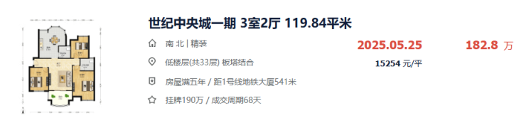 低楼层三房两卫的户型,5月份成交了一套单价1.5万的房源。
