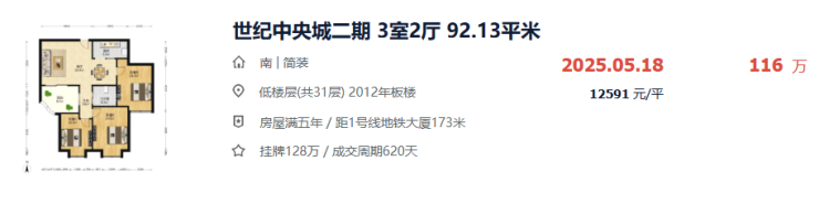 像这套92平的三房,成交单价到了1.26万,总价116万。但这是一套低楼层房源,应该是2楼的房源,大概率应该是毛坯。