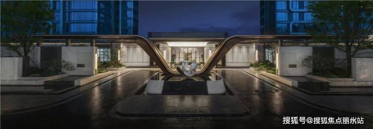 小区大门以V字造型建筑致敬黄金水道,寓意扬帆远航。