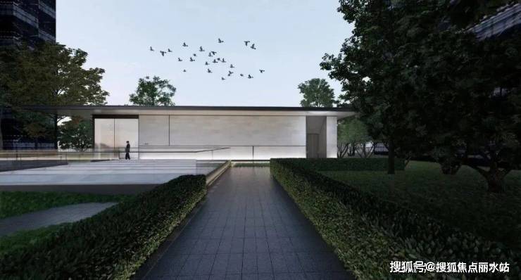 当踏上通过城市客厅由归家亭开启的归家之路,让人在无界的空间中感受入则宁静出则繁华的居住体验。挑檐的运用模糊了建筑与自然的界限,米黄色石材的温度拉近了人和建筑的距离,这一刻,建筑、自然、人和谐共生。