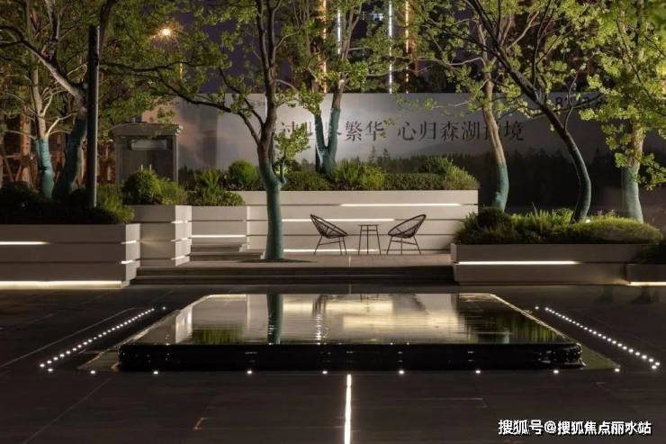 独特的对称式空间矩阵,纵横的线条,简化周边环境相对“混乱”的复杂性,而镜面水景的延伸感,竖向延展了场地的视域,带给人丰富的层次感,纵深感。