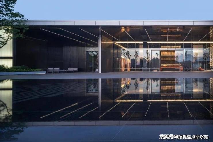 通过主入口镜面水景竖向延展场地视域,又将景观、建筑融为一体。形成丰富的空间层次。