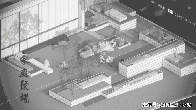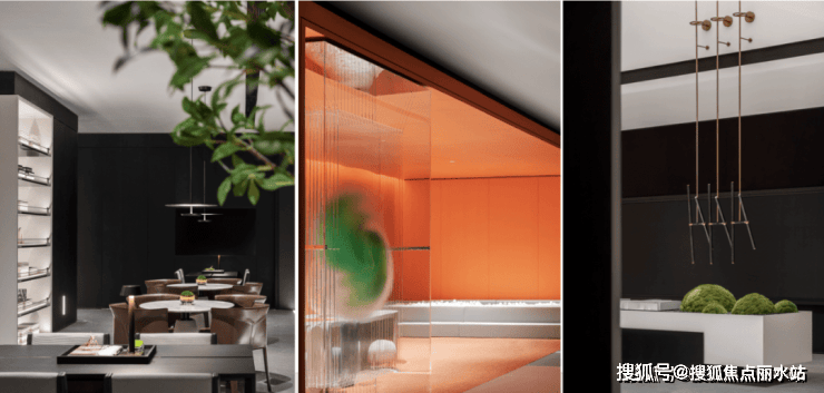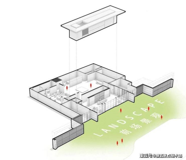 本案打造了长沙中海首个所见即所得的示范区,在前场设置酒店式入口广场形成城市与建筑的过渡空间,并向两侧延伸出结合商业的半私密景观休息空间。向内连接着售楼处本体,后期将会改造成社区客厅和会所空间。向上连接着归家景观亭,(前期作为样板房的展示空间),利用空间变化和景观穿插形成三重归家礼序。