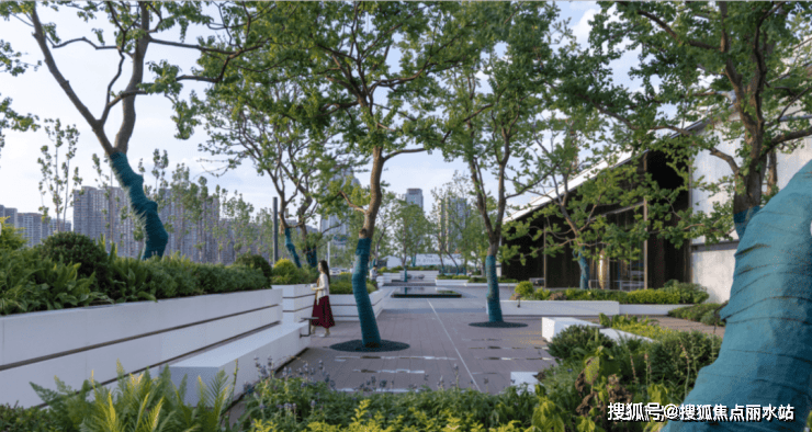 在公共之外,是属于私域的林下休闲右侧花园旨在塑造“生活小剧场”独自沉思、林下对弈、三五小聚提供了交互型健康社区的活动场地。长条状白色的植物浮岛,带来漂浮小花园的视觉感,营造简笔画般的韵味。场地营造诗意的同时,更重要的是诗化居者的精神空间。