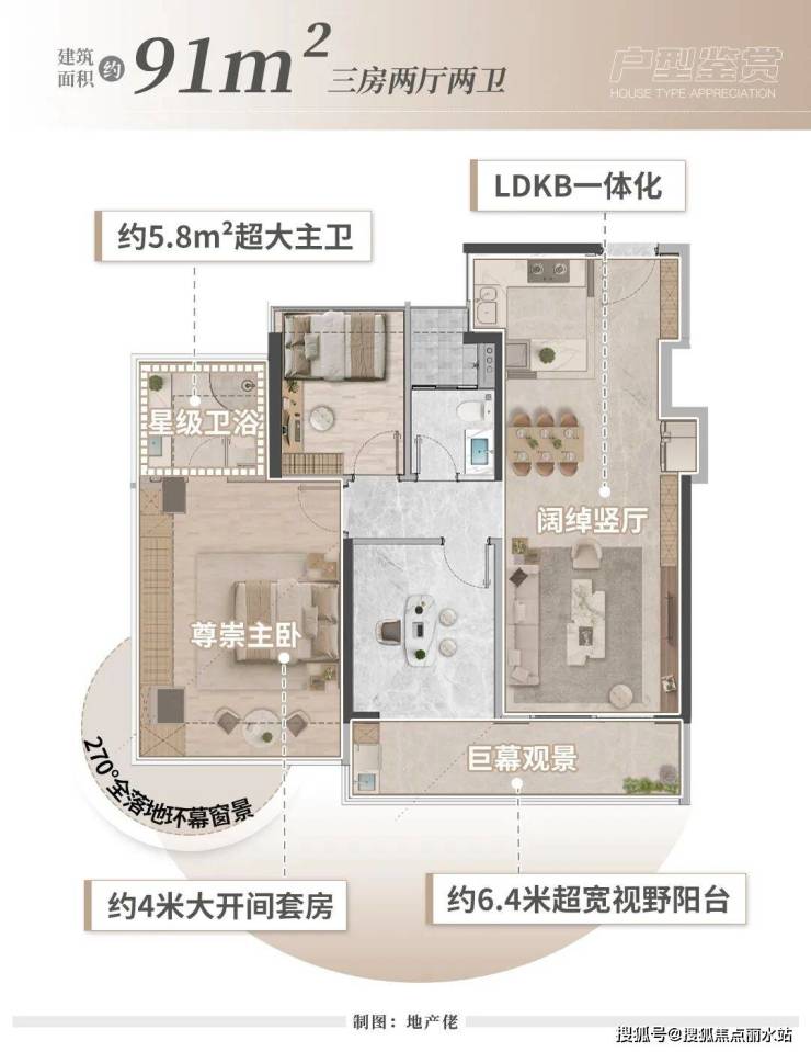 配备了约6.5米的宽幕阳台,无界观景,换新生活场景。
