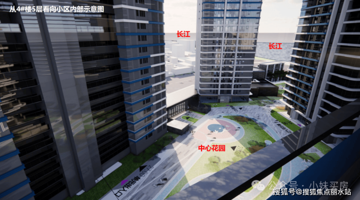 4号楼属于住宅第二排,看江视野会被1、2号楼遮挡,属于夹缝中看江,主要还是看小区内部园林,分布的165平的户型。