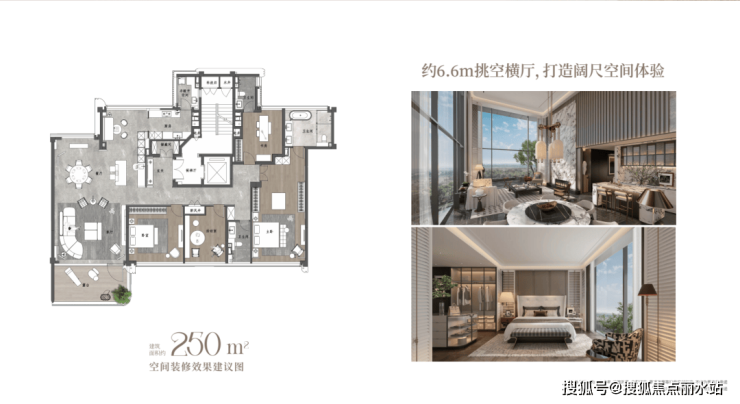 建面约220-250㎡,7-8层纯低密,包含约6.6米挑空墅厅户型,主卧270°全景观景舱,星级卫浴+步入式衣帽间,还有私密大露台。