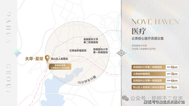 4、医疗云贵核心医疗资源云集昆明医科大学第二附属医院、云南省肿瘤医院、昆明医科大学第一附属医院、西山区人民医院三级综合医院,多层级医疗体系,为全家人的健康生活护航。