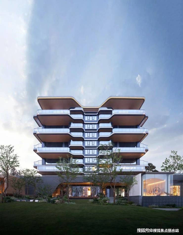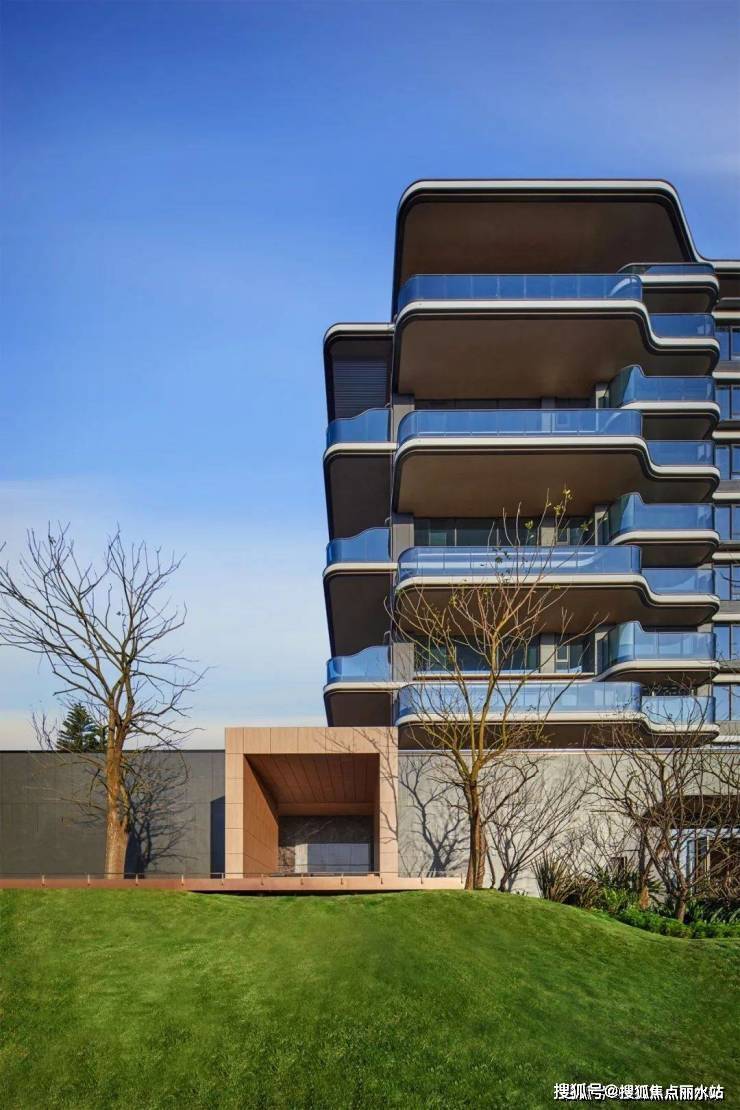 建筑立面设计独具匠心,以灵动飘逸的白色金属线条,勾勒出宛如悬浮晶体般简洁纯粹的形态,尽显利落与精致。