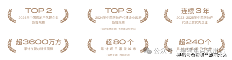 2024年,荣获中国房地产代建企业新增规模排行榜TOP2、中国房地产代建企业政府新签规模TOP3、累计项目覆盖城市超80个,累计在管项目数量超240个,累计在管项目总建筑面积超3600万方。