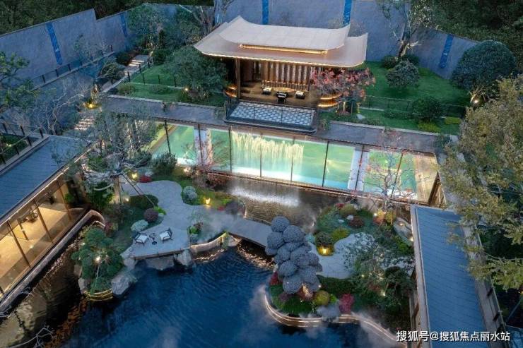 约1300方二进院落,将南宋《十二水图》的造园意境融入其中,到处都是灵动水景,聚财又聚气。