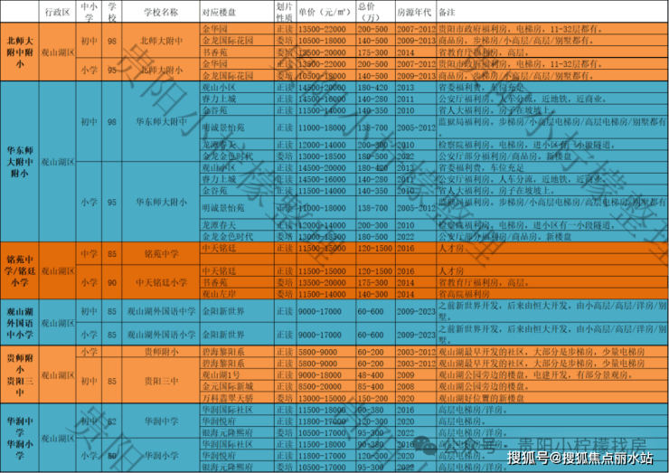 在观山湖区,一梯队学校北师大附中附小/华东师大附中附小,学区溢价(因为学校,房屋每个平方多卖的价钱)动不动就是6000-8000元/㎡,需要对学区有极大的执着或不俗的财力才能下决心购买。