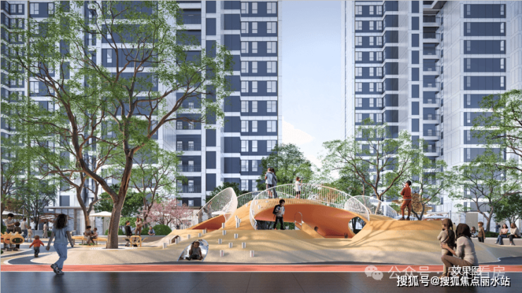 项目打造了全龄段活动趣乐空间、亲子陪伴空间、长者健身空间,以及健康运动环,600M超长跑道串联起各处超1600㎡的乐活运动场地。