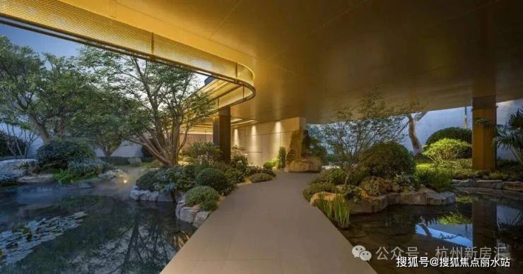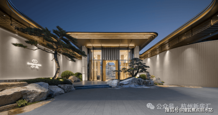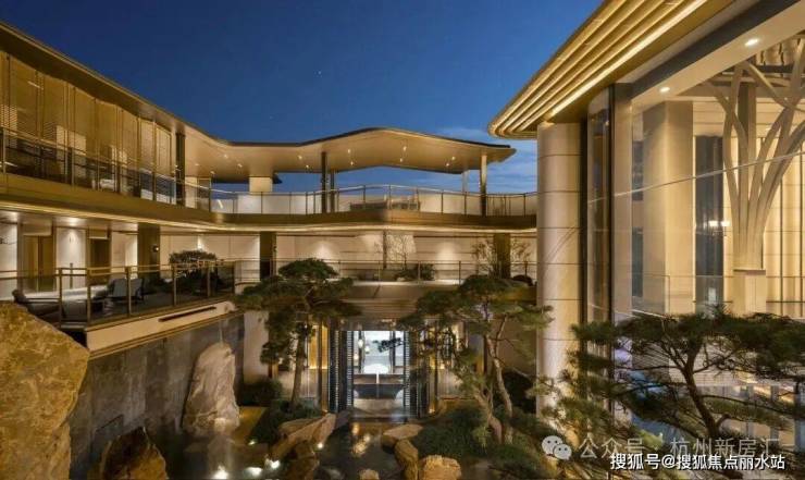 约43米恢弘门庭两侧黑松耸立,挑高约12米的归家大堂洒下尊崇感,钱塘江潮涌的曲线凝固在露台边缘,星河触手可及。
