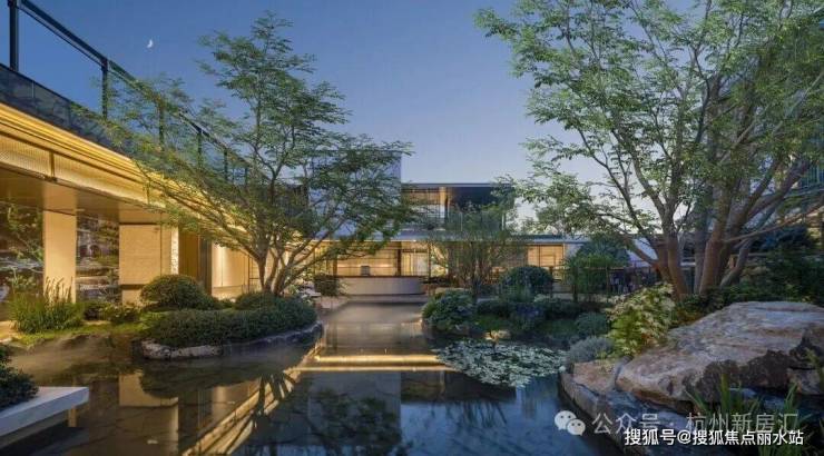 景观以「四境四巷」铺陈东方礼序,「五重归家」轴线串联宽约128米恢弘门庭、约15米叠石飞瀑、约13米榫卯转译的现代穹顶等。约1300㎡下沉式庭院采用三层立体观景设计,15米叠石飞瀑再现《溪山行旅图》的山水意境。