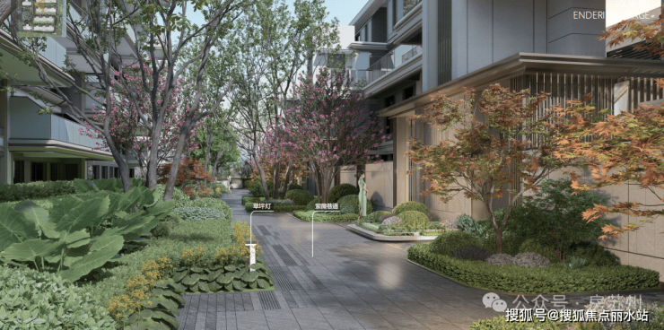 叠墅主题巷道:打造樱花、桂花、紫薇三条主题花园巷道,步移景异