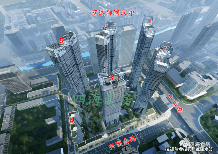 万达御湖汉印占地面积约5.4万方,总建面约47万方,容积率6.15,共1152户,包含6栋住宅和约7668平米商业。