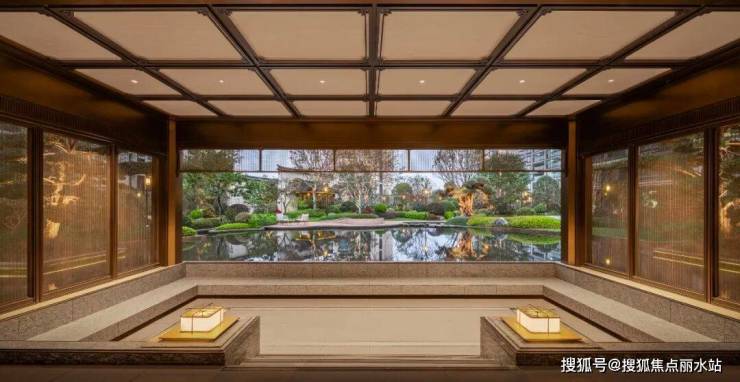 项目南面的地上会所采用东方色彩的精装风格,搭配巨幅玻璃幕墙和南中庭景观簇拥的恢弘大气。