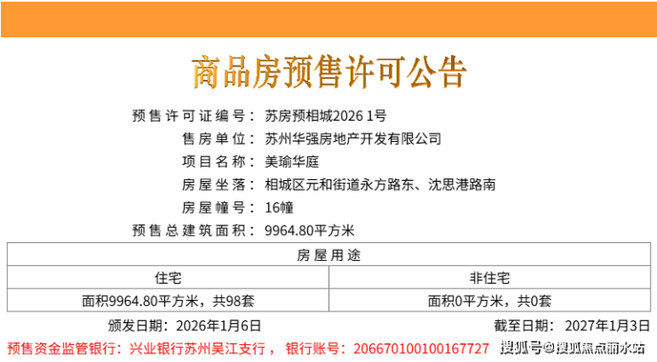 这也是苏州楼市在2026年的首张预售证!