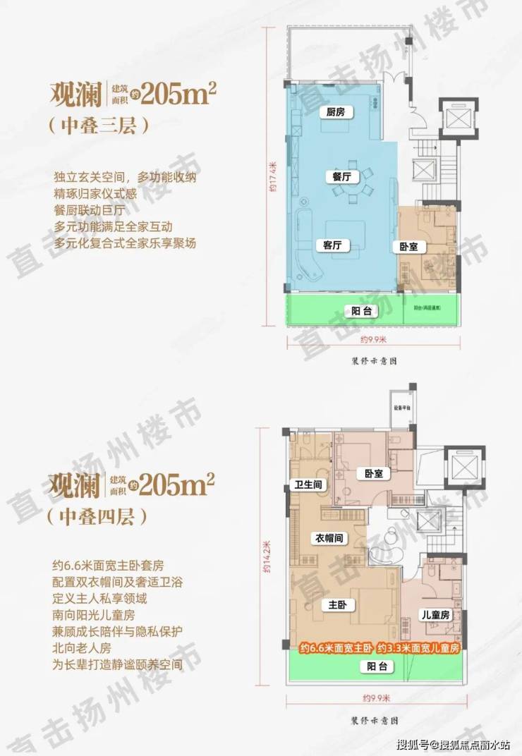 建面约205㎡中叠:餐厨联动巨厅,多元功能满足全家互动。二层三套间设计,让每个户型的舒适度、私密感都大大提升。