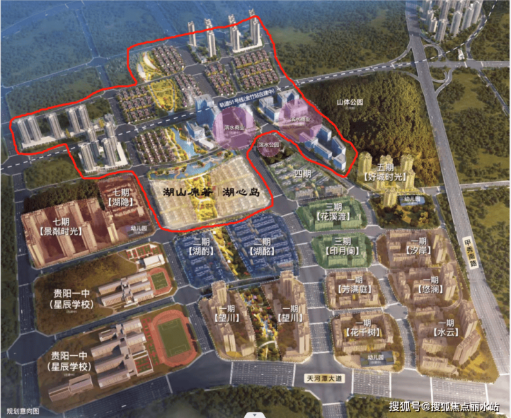 龙湖·湖山原著:项目位于花溪区(原小河经开区)金竹板块甲秀南路与天河潭大道交汇的西北侧,由贵州裕丰合置业投资有限公司开发(贵阳龙湖嘉玺置业有限公司和星臣控股集团有限公司联合控股,前者控股90%)。