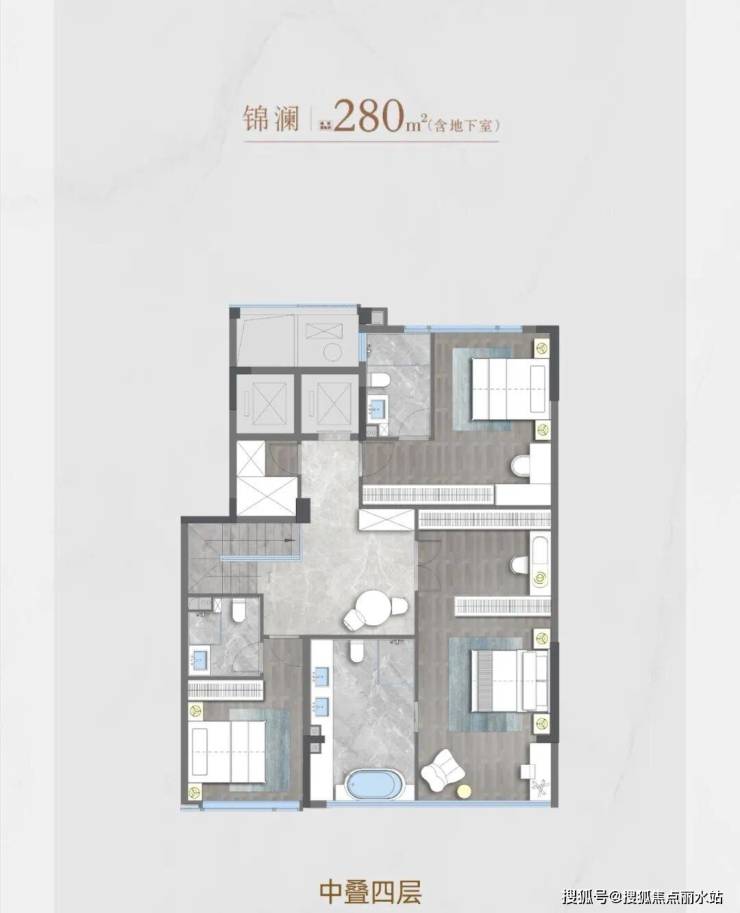 外立面天然高级石材,雅灰鎏金色调,沉稳大气;