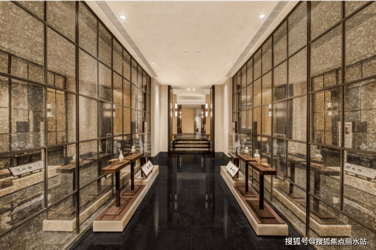 文化细节随处可见,苏式的瓦片(墙面)、屋脊(天花造型)、清波(石材波浪、水纹玻璃)、桂花祥纹、玉雕苏绣、吴门画派的卷轴造型等,打造沉浸式的苏州立体文化博物馆。
