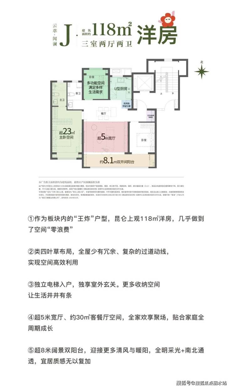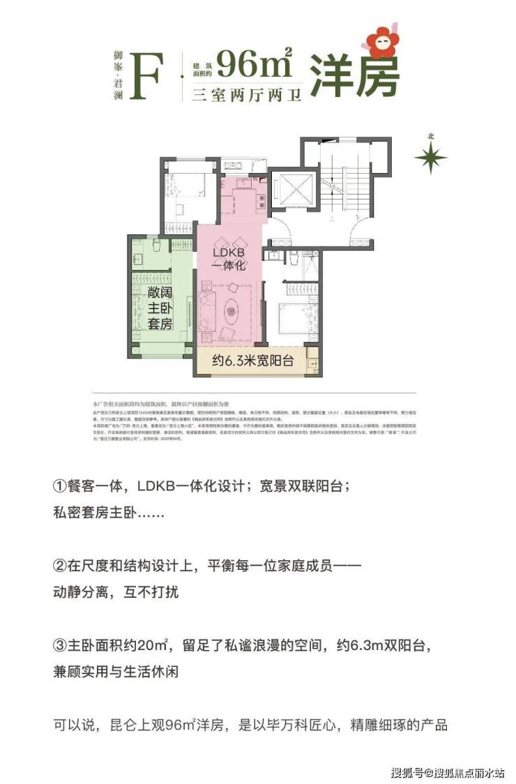 昆仑上观规划设计约 96/118㎡三室两卫宽厅洋房