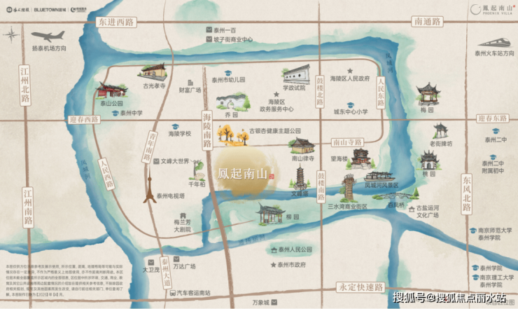 凤起南山里位于城中,蓝城集团以中式为缘,择址城市贵脉,续泰州历史记忆,在凤城的护城河内,为"凤起系"产品找到了落子之处。这也是蓝城首次进驻泰州主城的作品。