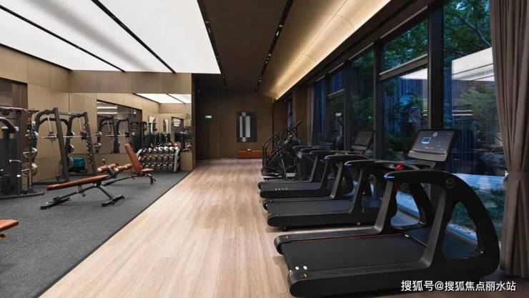 地库大堂天花板从铝方通升级为仿云石亚克力+灯带系统;单元入口增加对景端景墙;会所健身器械从英派斯升级为Anyfit专业系列,还新增了两个棋牌室。