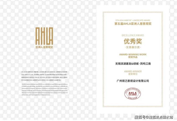 近日,凤鸣江南再度荣膺第五届AHLA亚洲人居景观优秀奖(实景展示类),向买房人展现了项目的超强兑现力。