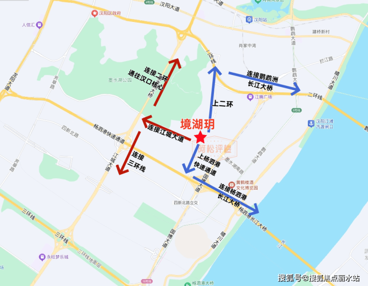境湖玥位于汉阳区江堤中路与墨水湖南路交汇处,同时占据了2.5环内、二环旁的核心地段。