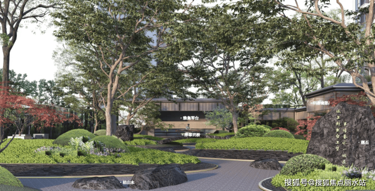 该项目以“山水集悦·诗意雅境”为核心理念,规划打造三重归家礼序和“一环三境十二景”的新中式园林,内部景观包含枯山水园林、中式观澜亭、风雨连廊、江南石桥等,更将大量采用红枫、桂花、罗汉松,紫薇、鸡爪槭等名贵树种,呈现出移步异景的精致园林。