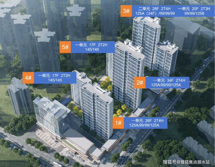 根据规划,该项目4、5号楼是17层的小高层,1号楼为28层,3号楼一个单元20层,一个单元28层,2号楼为34层。