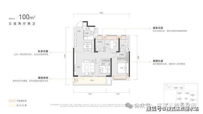约88%得房率|南向9.8m横宽|LDK一体化|套房式主卧