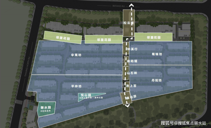 萃取沧浪亭、留园、耦园、拙政园、可园林韵,以一轴·两园·四坊格局,精植四季花木,营构四重花园秘境,再现移步换景的苏式诗境。