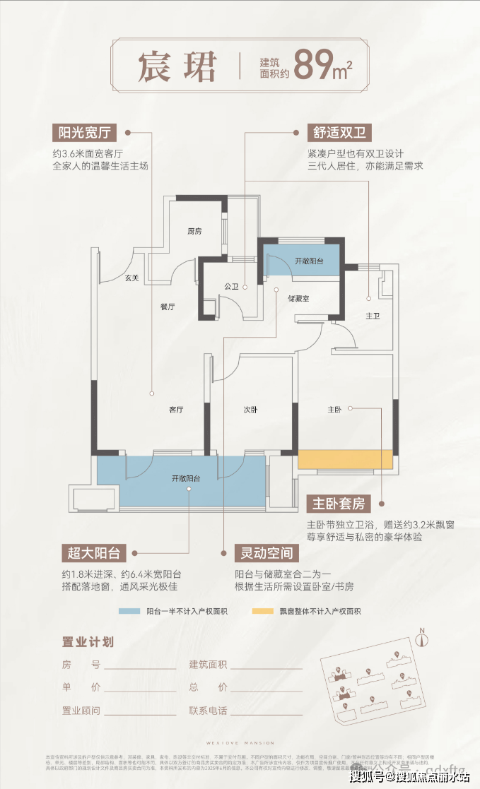 面积段:89m²三室两厅两卫、100m²三室两厅两卫、108m²三室两厅两卫、118m²四室两厅两卫;