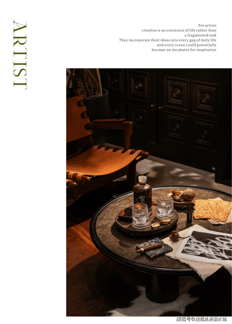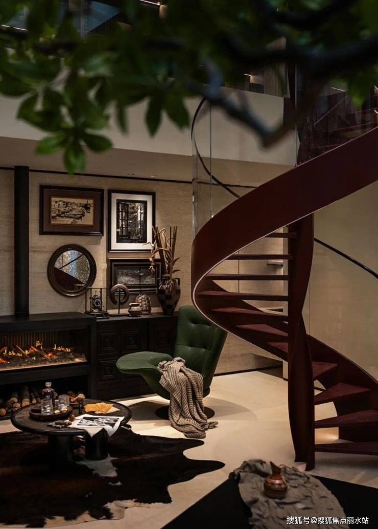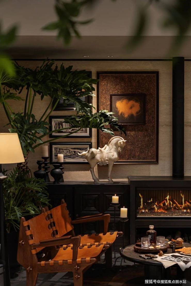 休闲区如温暖的磁场,衔接起灵感迸发的创作区与静谧沉思的展廊。壁炉中真火木柴持续跃动橙红光晕,将暖意漫射在扎染羊毛毯上,边柜上放置的手作艺术品有着无言的故事。低矮的皮革休闲椅和懒人沙发围合沉浸式氛围角,让品酒夜话与画布前的灵感迸发自由共鸣。