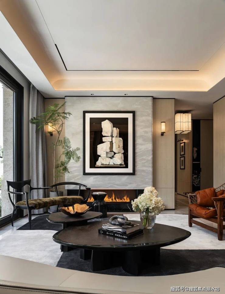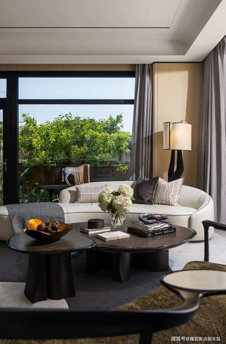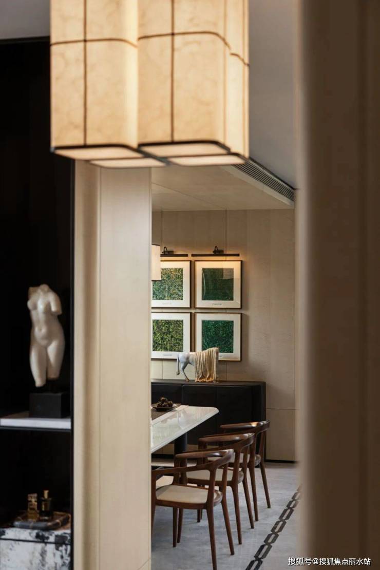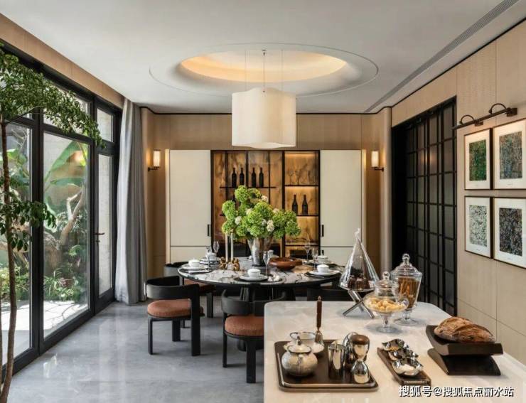 落地窗是自然的画框,精心计算的开窗角度,将庭院竹影、远山林霭框作动态壁画。清晨茶烟漫过书页,午宴笑语融于厅堂,空间在社交与家庭场景间无缝流转。