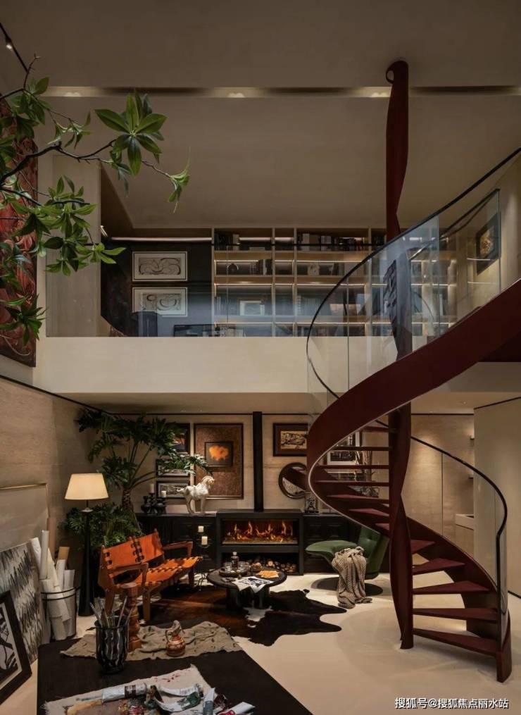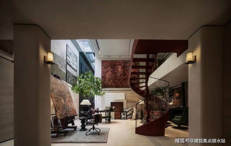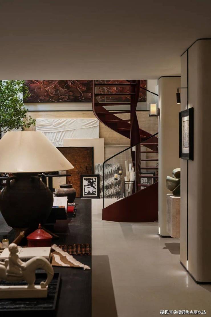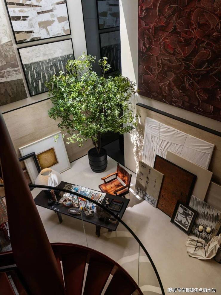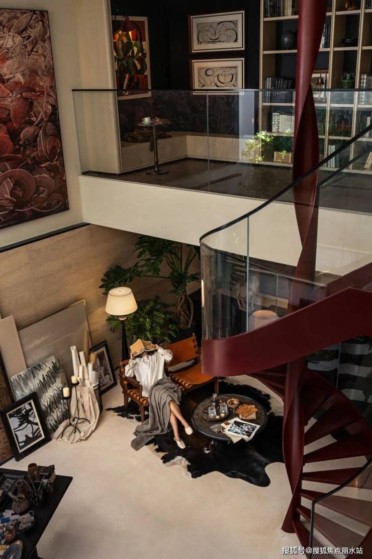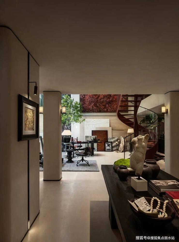 负一层至夹层打造垂直艺术核心区域,油画工作室、围炉品酒区、作品展廊等自由串联。