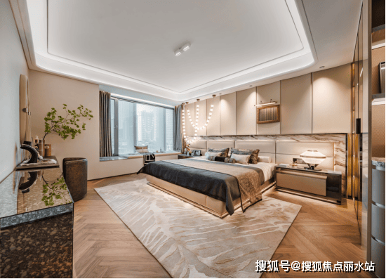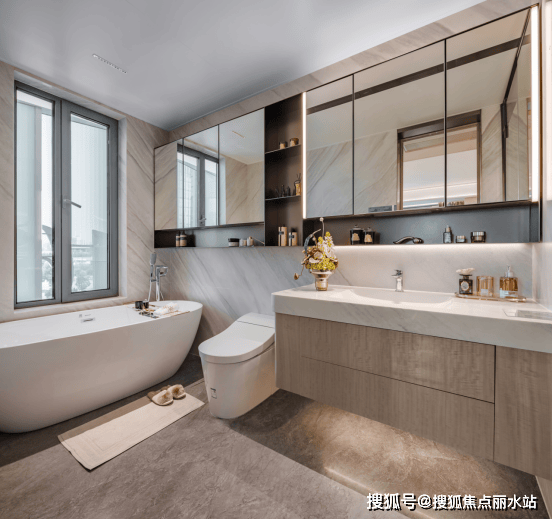 此外,不得不感慨此户型主卧大套房的尺度感,开间约4.2米,不仅带有270度瞰景飘窗,还享有主卫大浴缸豪华配置,着实令人羡慕。